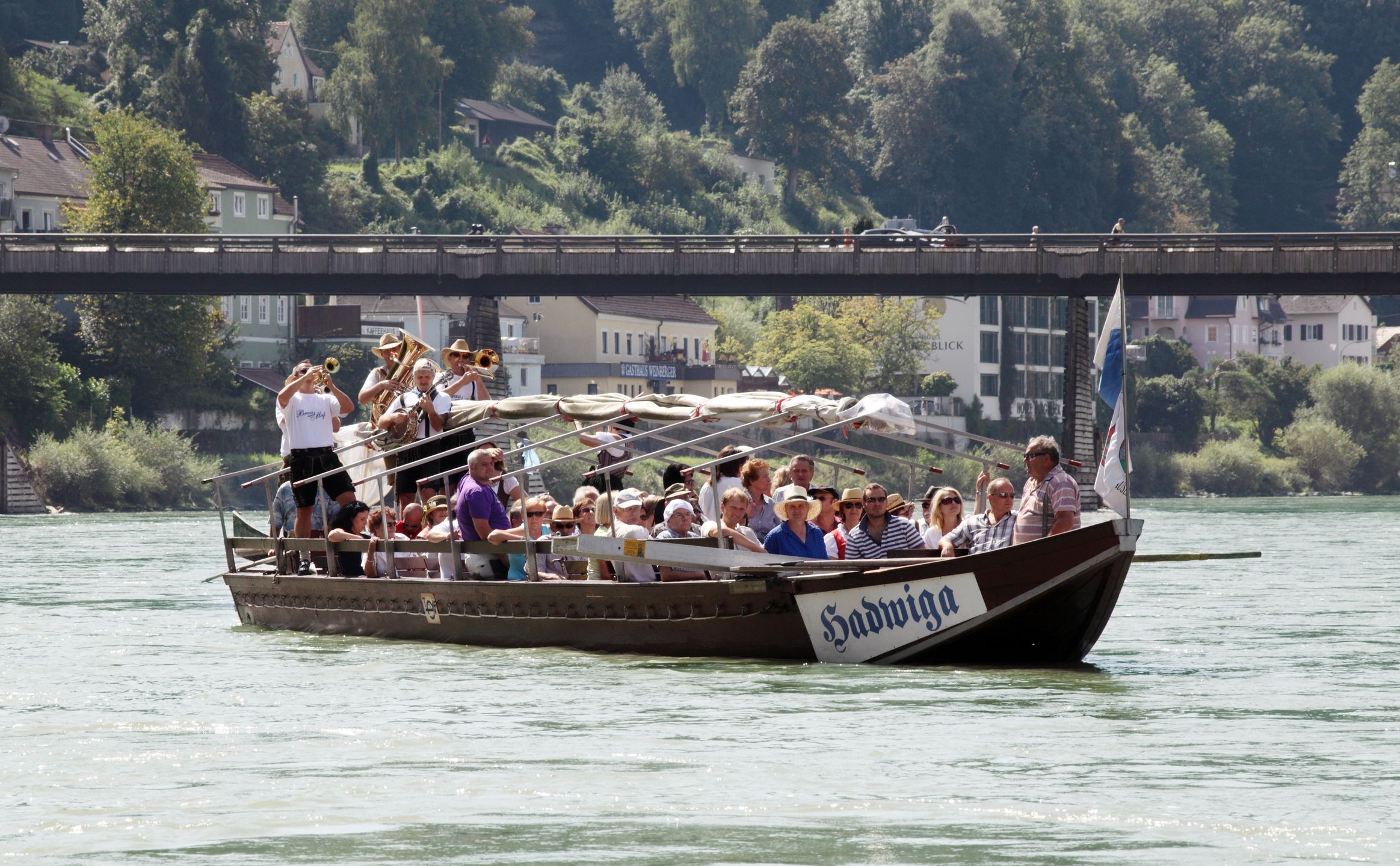 Auf Nachbauten der historischen Salzkähne, den sogenannten Plätten, beginnt eine traditionsreiche Fahrt, die an den einstigen Salzhandel erinnert: Im Mittelalter transportierten diese Holzboote mit flachem Kiel das „weiße Gold“ aus den Salinen von Hallein bis nach Burghausen.