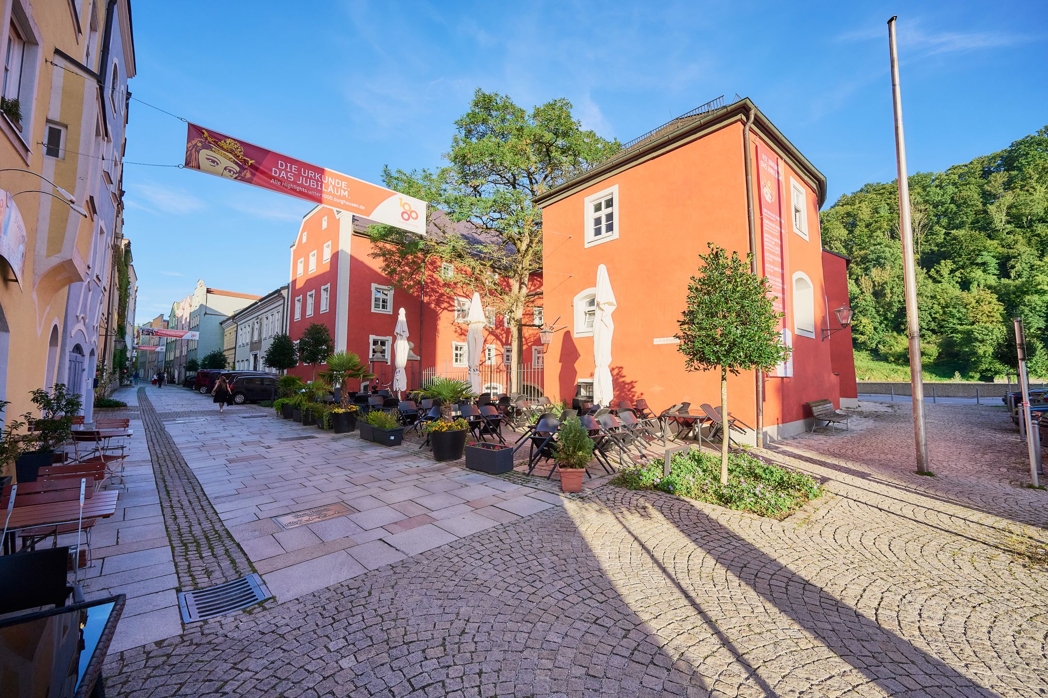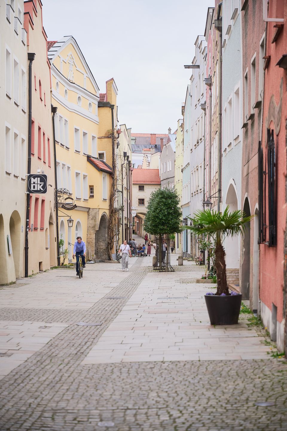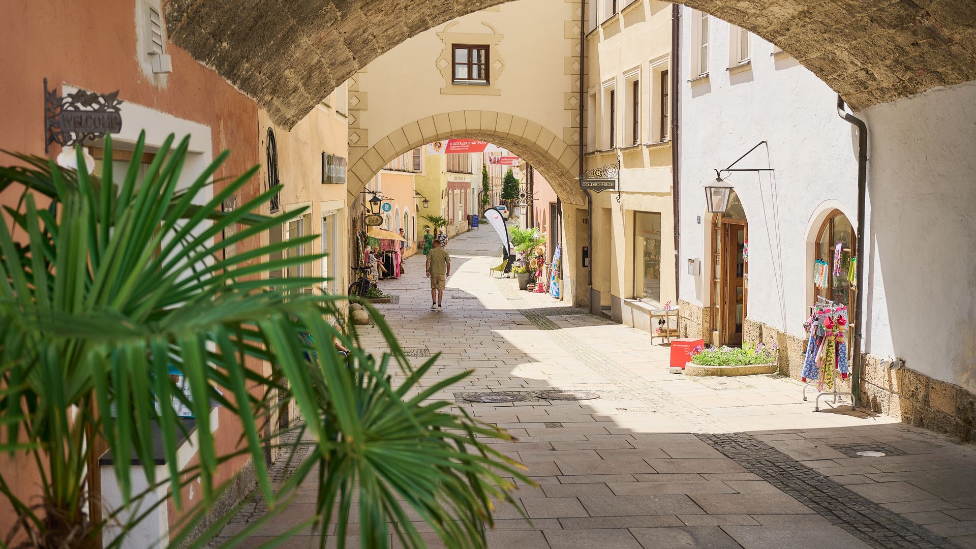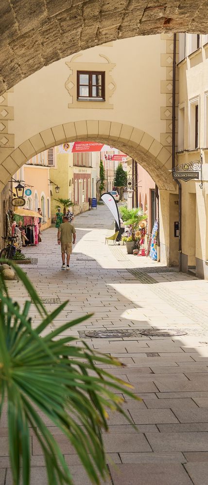 Die Grüben, die schon 1333 als „Grueb“ erstmals urkundlich erwähnt wurden, waren über Jahrhunderte hinweg Heimat zahlreicher Handwerksbetriebe. Die Flaniermeile Burghausens betritt man vom Stadtplatz aus durch einen markanten Torbogen und schlendert durch eine lebendige Altstadtgasse, die von bunten, liebevoll sanierten Häusern gesäumt wird, viele davon stammen aus der Spätgotik.