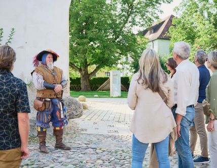 Was machte eine Festung aus? Welche Waffen wurden zur Verteidigung genutzt? Wie schützten sich die Bürger der Stadt? Ein Landsknecht/ eine Marketenderin erzählen aus ihrem Leben auf der Burg, über Kriege, Waffen und Soldatenleben.