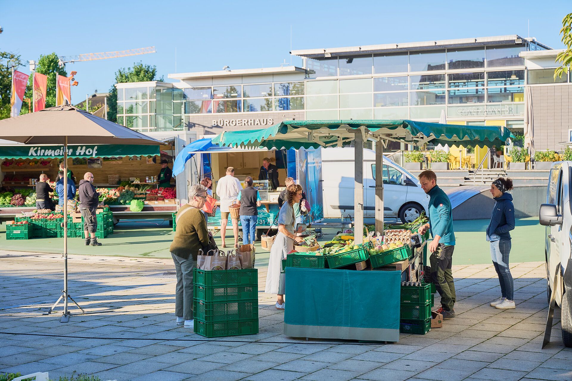 Der Wochenmarkt auf dem weitläufigen Gelände der Messehalle in der Neustadt ist jeden Donnerstag ein Besuchermagnet für die ganze Region. Rund 50 Marktverkäufer aus Ober- und Niederbayern sowie dem benachbarten Österreich verwandeln das Gelände in eine bunte Marktlandschaft voller saisonaler, regionaler Produkte.