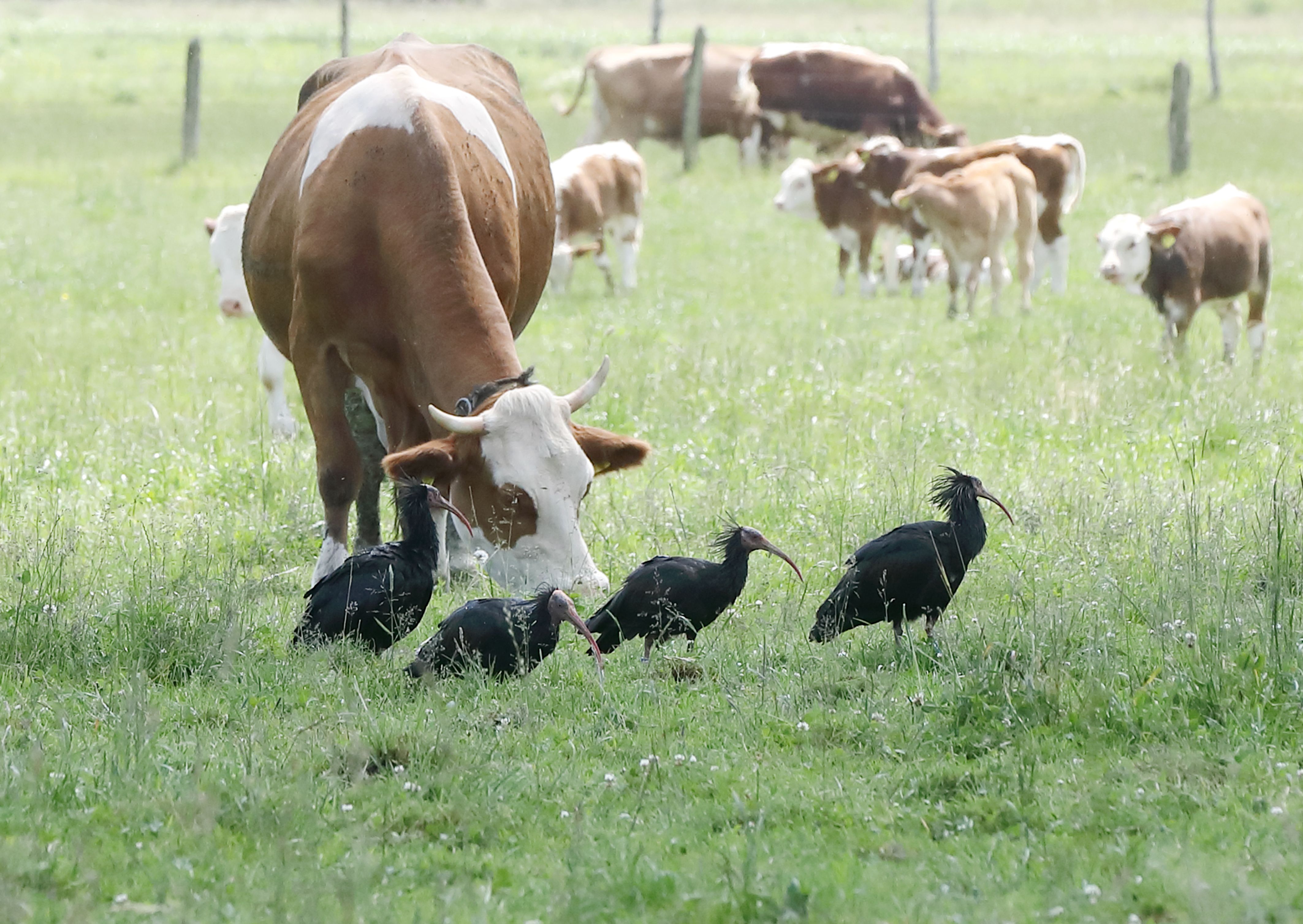 In Burghausen besiedeln die Waldrapp-Familien in der Sommersaison die weitläufigen Wiesen am sogenannten Bergerhofgelände und die Brutnischen in der Wehrmauer des Pulverturms. Wer Glück hat, entdeckt von Anfang April bis August bei einem Wöhrsee-Spaziergang die auffälligen Tiere vor der Kulisse der weltlängsten Burg und kann sie beim Würmer picken beobachten. Wer sich nicht allein aufs Glück verlassen möchte, hat digital vielleicht mehr Chancen: Die mit GPS-Sendern ausgestatteten Vögel können per App verfolgt werden. Im Animal-Tracker sieht man im 15-Minuten-Takt, wo die Vögel gerade nach Nahrung suchen oder sich aufhalten.
