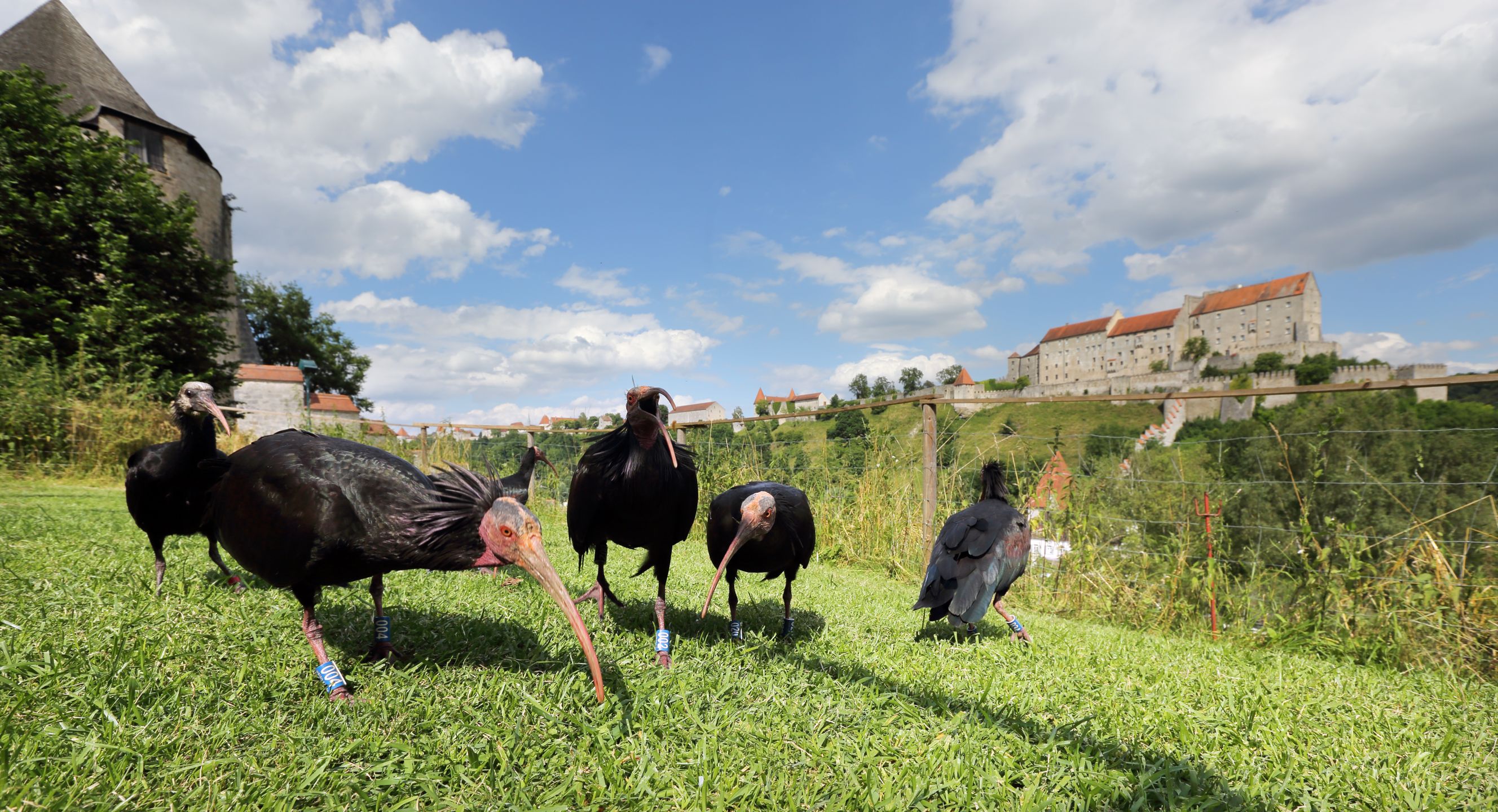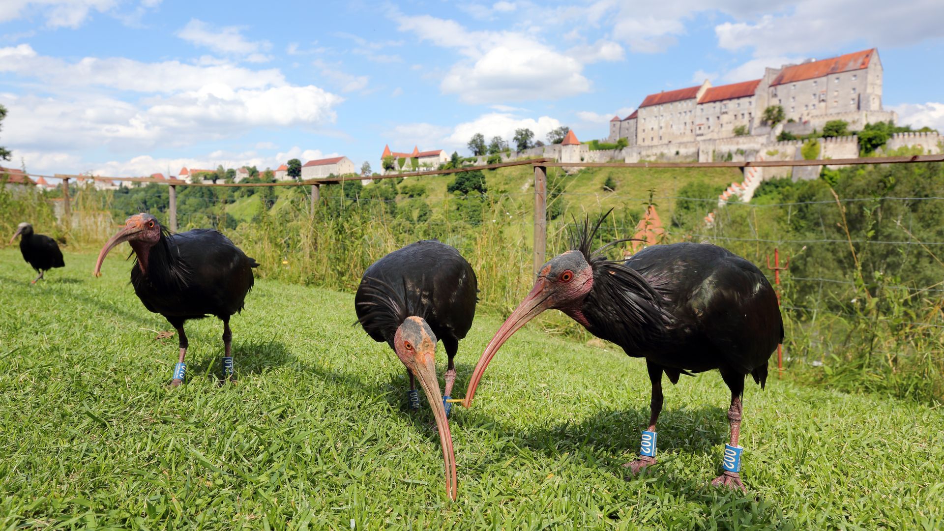 Ganz außergewöhnlich seltene Tiere brüten jedes Jahr gegenüber der weltlängsten Burg: die Waldrappe, Ibisvögel mit glänzendem, schwarzem Gefieder, markantem Schopf und langem, rotem Schnabel. Schon im Mittelalter waren sie in Burghausen heimisch, sind aber inzwischen weltweit vom Aussterben bedroht.