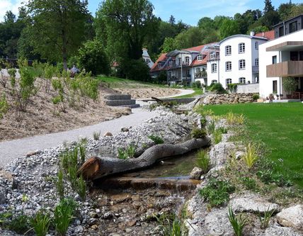 Mitten in der Altstadt mit Bachlauf, Sitzgelegenheiten und Hochbeeten.