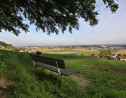 Vom Waldrand des Hechenbergs, oberhalb des Stadtteils Unghausen, zeigt sich das Panorama der Alpen von seiner ganzen Schönheit. Die beste Fernsicht genießt man bei Föhn, wenn die Luftmassen des nördlichen Voralpenlandes aufgrund warmer trockener Fallwinde nur eine geringe Feuchtigkeit haben. Zur Orientierung: Die Berchtesgadener Berge liegen direkt vor uns, nach links (Osten) schließen sich