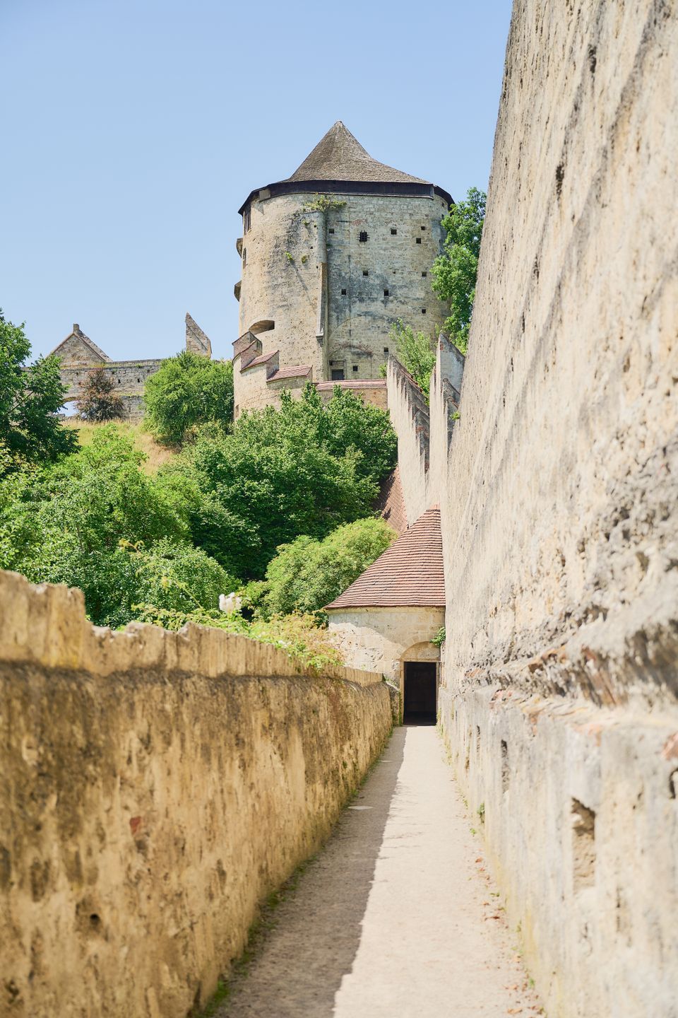 Ein extra beeindruckender Spazierweg beginnt am Eingang des Wöhrseebads. Man spaziert zwischen den mächtigen und engen Mauern des historischen Wehrgangs (auch „heimblicher Gang“ genannt) und weiter über einen schmalen Steig zum Pulverturm.